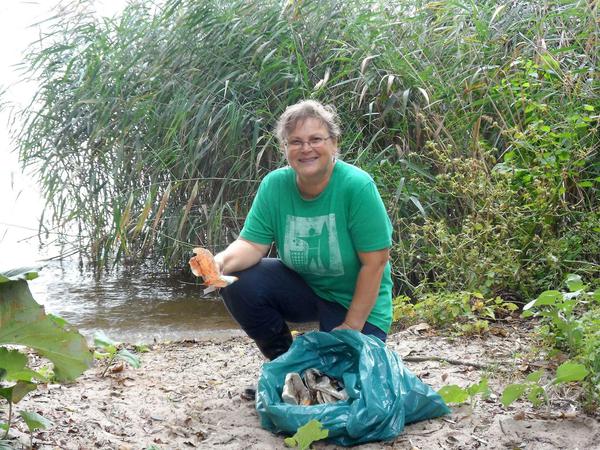 Die sonnige Hälfte des Jahres verbringt Angelika Heckhausen in ihrem Atelier auf der Halbinsel Pichelswerder, in der kalten Jahreszeit zieht es die 59-Jährige auf die Kanareninsel Fuerteventura. Sie liebt das Wasser, ob süß oder salzig – und ärgert sich, wenn ihr Lieblingselement von gedankenlosen Mitmenschen zugemüllt wird. „Ich habe jeden Tag vor Augen, was so alles die Havel runtertreibt“, sagt sie. Heckhausen will was tun – und befreit die Havelstrände zwischen Großer Steinlanke und Lindwerder vom Unrat. Styropor, Plastikverpackungen, sogar ein Einweggrill wandern in ihren Müllsack. „Ich kann nicht verstehen, warum die Leute nicht wenigstens ihren eigenen Abfall wieder mitnehmen,“ sagt sie
