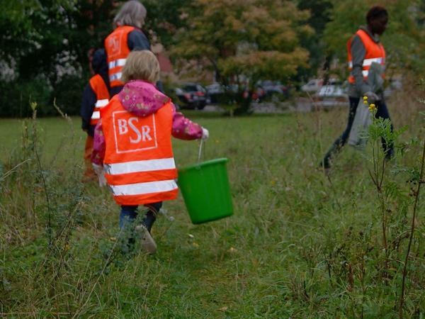 Besonders viel Müll finden die Kindergartenkinder des Kinderhauses „Tom Sawyer Dahlem“ am Freitag zwar nicht, dafür aber allerlei anderes. „Guckt mal, ich habe eine Nacktschnecke entdeckt“, ruft der 5-jährige Lennart und seine Freundin Mala hält stolz eine Vogelfeder in die Höhe. „Die Kinder sind ganz erstaunt, wie wenig Müll hier rumliegt“, sagt Erzieherin Nina Prädel. Zusammen mit ihrer Kindergartengruppe von 19 Kindern, die alle zwischen 3 und 6 Jahren alt sind, räumen sie die Straßen um den Kindergarten im Tom-Sawyer-Weg in Berlin-Dahlem auf. „Die Kinder wollten vor allem zu den Spielplätzen, auf denen wir sonst auch oft sind“, erzählt Prädel. In der Gruppe haben sie davor zusammen über die verschiedenen Arten von Müll geredet, welcher Müll gefährlich ist und welcher nicht. „Bisher haben wir nur Papier und Plastik gefunden“, erzählt Lennart und klingt ein wenig enttäuscht. Das ist dann aber so besonders, dass sich alle Kindergartenkinder sofort drauf stürzen. „Da hinten ist noch was“ und „ich will auch mal den Mülleimer tragen“, rufen sie durcheinander. „Dass die Kinder so viel Spaß am Saubermachen haben, hätte ich gar nicht gedacht“, freut sich Erzieherin Nina Prädel.