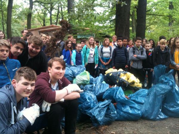 Seit neun Uhr früh durchstreiften sie mit ihren Lehrern den Park, krochen unter Büsche, scannten mit Adleraugen die weiten Wiesen ab. Für diesen Job hatte sie die BSR bestens ausgerüstet – mit Handschuhen und Greifzangen. „Hat sich gelohnt, sollten wir mal wieder machen“, rufen Antonio und Chantal, beide 13, und schleppen noch schnell einen versifften Teppich ran. „Wahnsinn, was manche Leute einfach wegkippen!“