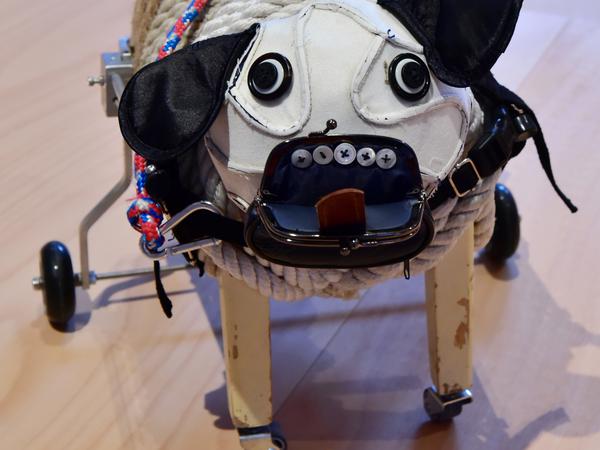 Geht man weiter, trifft man auf viele weitere Tiere. Langsam kriecht eine Weinbergschnecke am Boden entlang. Ihr Körper besteht aus der schneckenförmigen Spitze einer Geige. Anders als in der biblischen Erzählung berichtet sind nicht alle Tiere als Paare unterwegs. Kinder mit nur einem Elternteil merken so: Das passt zu meiner Lebenssituation. So geht es auch Kindern mit einer Behinderung, wenn sie auf den „Rollmops“, wie ihn Kleine-Engel nennt, treffen. Der Mops mit Gehhilfe kommt auch mit ins Schiff. Alles ist so gebaut, dass man auch im Rollstuhl aufs Schiff fahren kann.