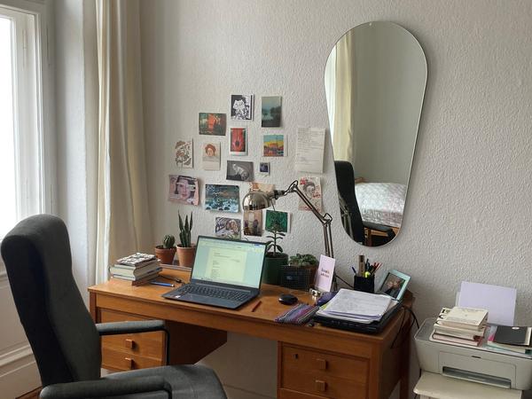 Auf dem hölzernen Wohnzimmertisch liegen ihre gesammelten Werke. Aufgetürmt. Akkurat sind zahlreiche Stellen mit Zetteln markiert. In der Ecke das gemachte Bett. Alles scheint blankgeputzt. Ordentlich.