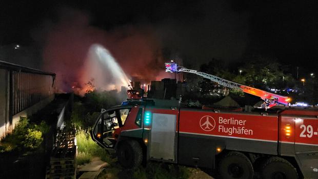 Am Sonntagabend bricht ein Feuer in Marzahn aus, bis Montagmittag ist die Feuerwehr im Großeinsatz. Die Flammen erfassten mehrere Lagerhallen und Lastwagen. Es soll eine Festnahme geben.