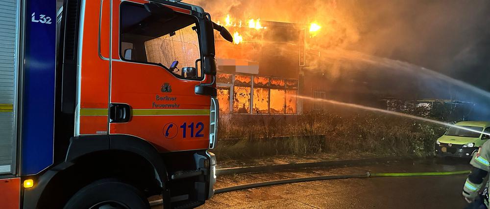 Flammen in Berlin-Hellersdorf: Leere Lagerhalle brannte aus – Glutnester werden noch gelöscht