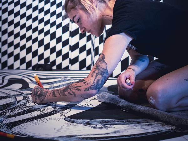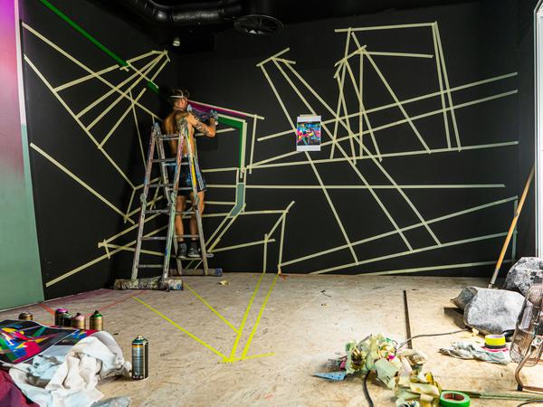 Im zweiten Stock wird es dann psychedelisch: Man betritt ein Labyrinth aus Neonfarben, bunten Pilzen und Streifen, die über Lichteffekte die Kontraste ändern. Andere Kunstwerke, etwa jenes der Künstler Rooshi und Dinopium, verbinden Tapekunst mit Videoinstallationen. Ihr Raum mit dem Titel „The Last Goodbye“ konfrontiert die Betrachtenden mit der ökologischen Krise: Er thematisiert Tier- und Pflanzenarten, „die sich ein letztes Mal von dir verabschieden möchten“, sagen die beiden Künstler.