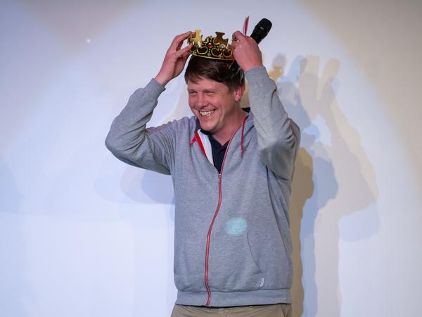 Es folgten die größten Hits der Checkpoint-Band, eine Grenzen überwindende Liebesgeschichte, vorgetragen von Autor Robert Ide, dem rührenden Ringbahn-Song der Comic-Zeichnerin Naomi Fearn und schließlich kam der große Moment von Leser Martin Bornholdt, der sich dem Checkpoint-Berlin-Quiz stellte. Mit Unterstützung von „Experten-Joker“ Lorenz Maroldt, subtilen Hinweisen aus dem Publikum und einem heftigen Räuspern des Wildtierexperten Derk Ehlert, der im Publikum saß, wurde er schließlich zum Berlinkenner des Monats gekrönt.