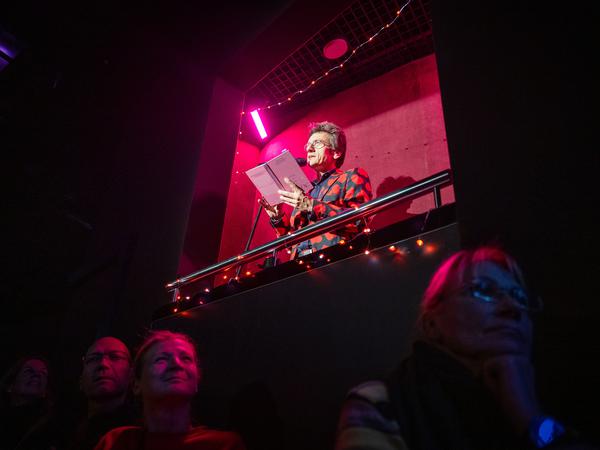 Zum Start nahm Tagesspiegel-Herausgeber und Checkpoint-Erfinder Lorenz Maroldt das begeisterte Publikum mit auf einen wilden Ritt durch eine Sammlung der skurrilsten und schönsten Szenen des Berliner Alltags – zusammengestellt aus Leserfotos, die der Checkpoint täglich in der Rubrik „KIEKSTE“ veröffentlicht.