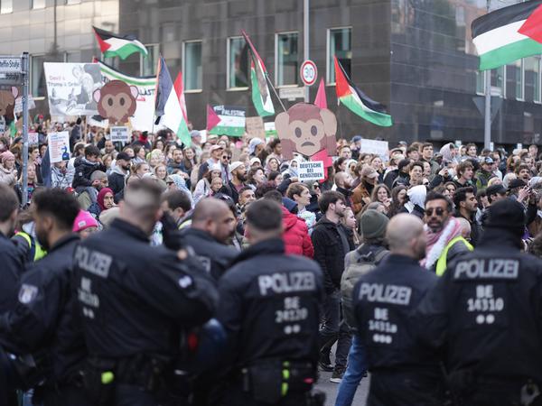 Ein großer pro-palästinensischer Demonstrationszug bewegte sich am Samstag durch Berlin. Mehrere Teilnehmer sollen verbotene Parolen gerufen haben.