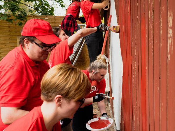 Dussmann-Mitarbeiter verschönern Abenteueroase