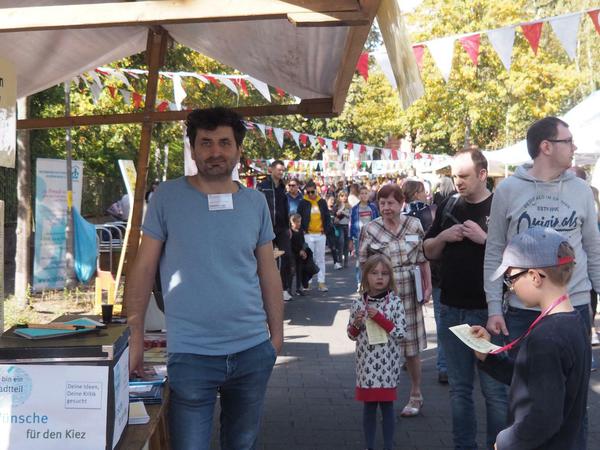 „Wir versuchen mit dem Fest die Nachbarschaft zusammenzubringen, um unseren Bismarck-Kiez lebenswert zu halten“, sagt Sebastian Singer am Stand von „Ich bin ein Stadtteil“, einem Kiezprojekt. „Heute ist hier die ganze Bandbreite des Kiezes abgebildet, jeder ist willkommen, von einem Jahr bis 110 und außerdem sind wir auch inklusiv.“