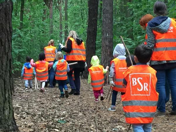 „Wir können weiter, der Wald ist groß“, ruft Erzieherin Sam Krepski – und die Zwei- bis Fünfjährigen laufen begeistert los, dem nächsten „ekligen Müll“ entgegen. Boris Buchholz