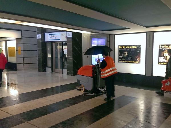 Am Bahnhof Gesundbrunnen war das Dach den Regenmassen nicht gewachsen: Es regnete massiv hinein, sogar einige der Fahrstühle mussten gesperrt werden.