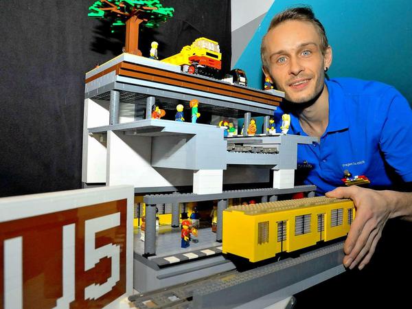 Seit Ende 2014 baut dort Olaf Reichert den Lückenschluss der U-Bahn-Linie U 5 zwischen Alexanderplatz und Brandenburger Tor – fast ausschließlich mit Steinen aus dem Lego-Sortiment. 220000 hat er bereits zusammengesetzt, mit knapp 400000 kalkuliert er insgesamt. Rund 500 Stunden hat das Team um Reichert bisher geackert, um das Vorbild im Maßstab 1:45 nachzubauen. Nun gut, Reichert weicht ein bisschen vom Original ab, obwohl das Projekt „Lückenschluss“ heißt.