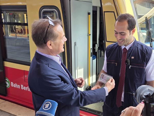 „Zu 25 Prozent“ sei ihm Berlin schon Heimat geworden in den sieben Jahren hier, sagt der gebürtige Iraner Omidi, während er in der offenen Tür seines rot-gelben Zuges steht. In seinem neuen Job sollte die Heimatgefühlsquote noch steigen. Aber jetzt muss Omidi erst mal die Glückwünsche seines obersten Chefs entgegennehmen.