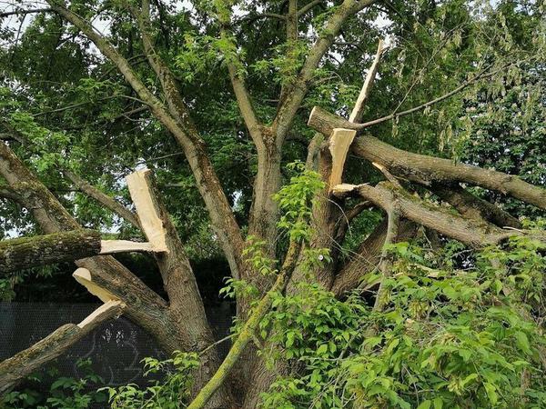 Mit einem drastischen Pflegeschnitt werde nun versucht, den Baum noch zu retten. Den finanziellen Schaden, sollte der Baum absterben, beziffert das Amt auf 20.000 Euro.