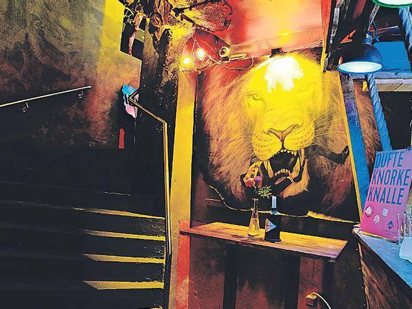 Drinnen sieht es ähnlich aus. Die Treppe führt in den Rachen einer riesigen Raubkatze, deren Innenleben nicht gerade dem Minimalismustrend entspricht. Die Wände sind mit edlen Rapportmustertapeten in Gold und Hellblau geschmückt. Dazu rubinfarbener Teppichboden, Sessel und Betten. Sitzgelegenheit bietet außerdem ein altes Boxauto, das zu den restlichen Jahrmarkts- und Zirkusreliquien passt. Teile von Karussells und Autoscootern zieren Bar, DJ-Pult und Bühne. Die hat Kulka, einer der fünf Gründer des Toast Hawaiis, von seinem Onkel bekommen.