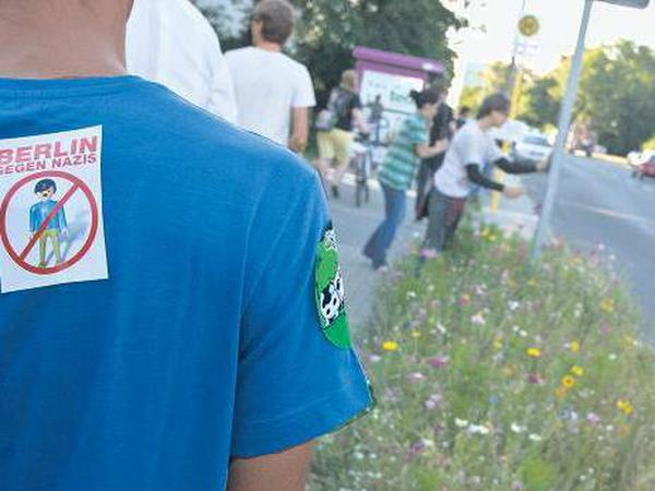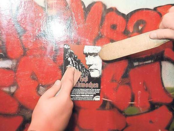 Die Arbeit ist zäh, nicht nur wegen des hartnäckigen Klebstoffs. NPD-Aufkleber, Hakenkreuze, rassistische Hetze – da kann einem direkt übel werden. An Laternen, auf Stromkästen, an Häuserwänden prangen oft nur ein paar Quadratzentimeter große Propagandaschriften, in den Vierteln rund um den S-Bahnhof Schöneweide, wo viele Neonazis wohnen. Kaum jemand kümmert sich darum, viele Bewohner bemerken die Aufkleber gar nicht oder wissen mit Neonazi-Symbolik nichts anzufangen.