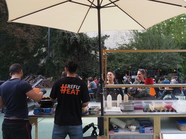 An diesem Freitag wird ein Reisgericht mit Gemüse und Erdnusssoße gekocht. Seit zweieinhalb Jahren organisiert das Nachbarschaftshaus Urbanstraße jeden Freitag im Mehrgenerationenhaus in der Gneisenaustraße. Den Kochlöffel schwingen jede Woche andere Freiwillige. In der engen Küche ist Platz für maximal drei Personen, die anderen helfen, indem sie an den Tischen zum Beispiel Gemüse schneiden. Endstanden ist das Projekt auf Initiative von geflüchteten Menschen, die in ihren Unterkünften nicht kochen konnten. Mittlerweile sind auch Senioren und Studenten aus dem Kiez dabei. Bei Tischgesprächen wird sich ausgetauscht und gegenseitig geholfen. Tim Spark