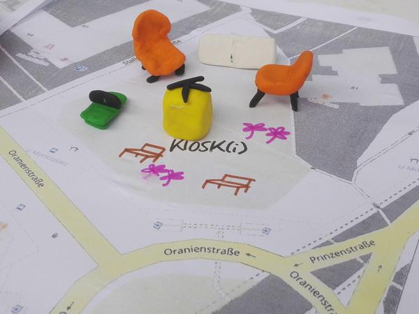 Mit kleinen, bunten Klebepunkten konnten Passanten und Anwohner auf einer Karte des Kreuzberger Wassertorkiezes ihre Lieblingsorte markieren. Das Ziel der Aktion: Eine Kiezidentität mitsamt Logo zu entwickeln. Sofia Rosso und Tatjana Rech vom Stadtplanungsbüro AG Urban standen dazu auf dem Kastanienplatz und sprachen Menschen an. Viele Anwohner füllten Fragebögen aus, klebten Punkte und sprachen mit den beiden Stadtplanerinnen über Orte im Kiez, die ihnen gefallen oder Veränderungen die sich wünschen. Das Highlight waren aber die Einwegkameras, die bei der Aktion an Kinder und Erwachsene verteilt werden. Sie werden bis Ende September gegen zwei Kugeln Eis wieder eingesammelt. Aus den Bildern entsteht dann ein Kiezkalender.
