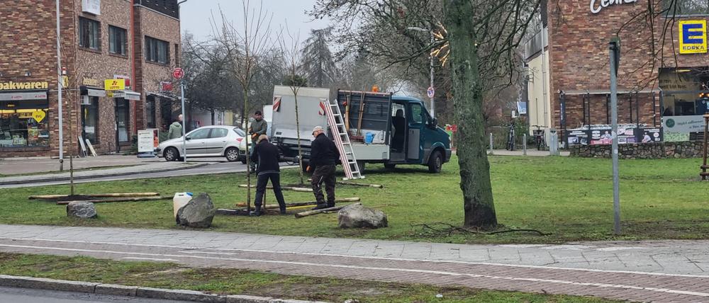Junges Grün am Kladower Dorfplatz: Da sind sie ja schon, die drei Bäume!