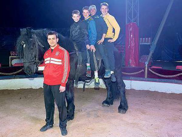Jockeyreiterei in der Manege, das hat nichts mit Galopprennen wie in Hoppegarten zu tun. Artistik auf Pferden gehört zu den ältesten klassischen Zirkuskünsten. Und zu den aufwendigsten und arbeitsreichsten. Man muss gleich zweierlei schaffen: die Tiere dressieren, ein Gespür für sie entwickeln. Und ein perfekter Akrobat sein. Deshalb gibt es in Europa derzeit nur drei dieser Truppen. Die Berolina-Jockeyreiter sind die Jüngsten. Nach Marcello kommt Mario, 21, dann Marlon, 20, Alessandro, 15, und James, gerade mal 13 Jahre alt. Im vergangenen Februar hatten sie ihren bislang größten Erfolg: Sie gewannen beim weltweit renommierten Circusfestival in Monte Carlo als zweitbeste Nachwuchsgruppe den Silbernen Clown.