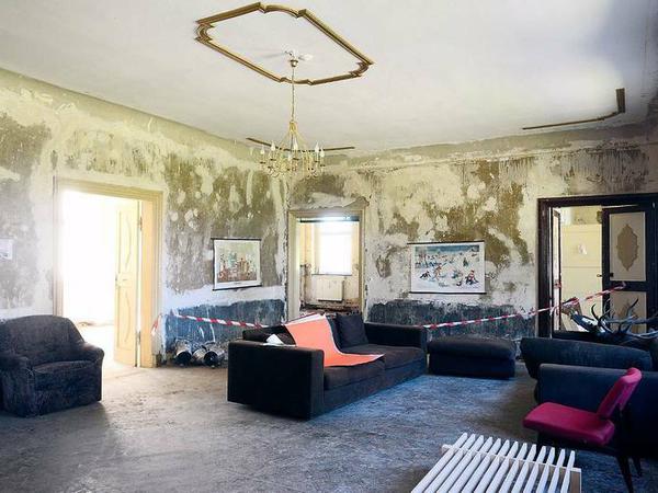 © „Das Haus atmet endlich wieder“, schwärmt Künstler Clemens Krauss, nachdem er bereits 15 Container Altmaterial entsorgt hat. Neben seinen privaten Räumen sollen in dem alten Gutshaus im Angermünder Ortsteil Mürow auch Wohneinheiten für Gastkünstler entstehen, die dort einmal für längere Zeit arbeiten können. Fotos: Mike Wolff