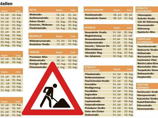Dennoch gelten für die Bauverwaltung die Sommerferien als ideal zum Bauen, weil es in Berlin – anders als in Flächenländern – dann „nachweislich weniger Verkehr“ gebe. Im vergangenen Sommer sei deutlich massiver auf der A100 gebaut worden, ohne dass der Verkehr zusammengebrochen sei, heißt es in der Behörde. In den Sommerferien 2015 soll die Rudolf-Wissell-Brücke auf der Stadtautobahn repariert werden, dies dürfte mehr Auswirkungen haben. Sie ist die längste Autobahnbrücke der Stadt – und auch die wichtigste.