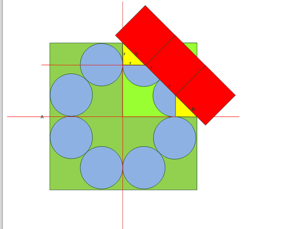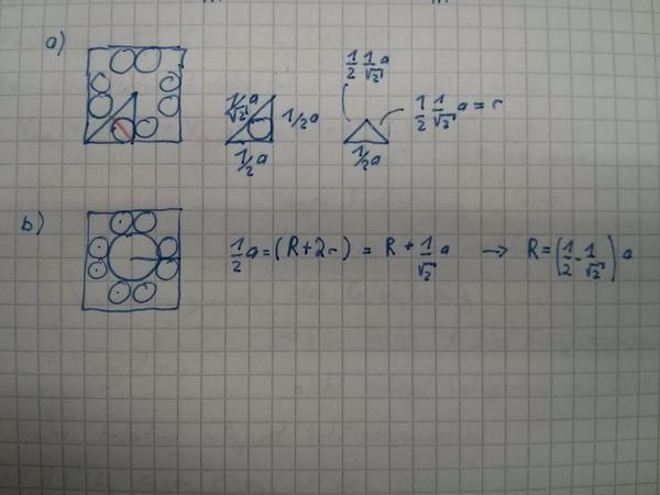 Zu b): vom Mittelpunkt zum Rand ist es die Strecke R + 2 Radien eines kleinen Kreises."