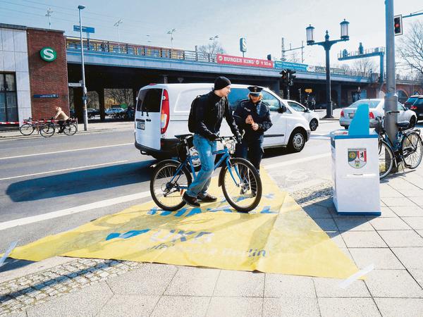 10.59 Uhr - Polizei kontrolliert Rechtsabbieger im Tiergarten: Rechtsabbiegende Autofahrer sind für Radler oft eine Gefahr. Deswegen kontrolliert heute die Polizei an einer berüchtigten Kreuzung in Tiergarten.