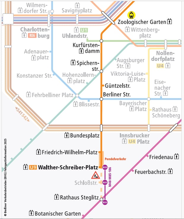 Bisher besteht ein Ersatzverkehr mit Bussen ab Berliner Straße über Walther-Schreiber-Platz bis zum S-Bahnhof Feuerbachstraße. Dieser entfällt nach BVG-Angaben ab dem 5. Januar. Zwischen Walther-Schreiber-Platz und den Bahnhöfen Schloßstraße und Rathaus Steglitz fahren jedoch die Buslinien M48, M85 und 186.
