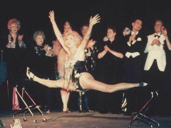 Der Sänger imitiert zwar auch, Johannes Heesters, Zarah Leander, aber er tritt ganz und gar als Mann auf, und er ist jünger als die anderen Sternchen auf der Lampenbühne. Das sind Leute wie Karmeen, nicht mehr so richtig jung, dafür umso entschiedener beim Farbauftrag. Sie tanzen, singen, und wer was noch Auffälligeres kann, räumt sowieso ab. Madame Kio etwa, der ins Füllige tendierende Tänzer und Sänger aus Ungarn, trippelt im Tütü Spitze. Karmeen stellt sich auf den Kopf und wirbelt mit den schlanken, Eins-A-durchgestreckten Beinen wild durch die Luft. Und dann, das ist Abend für Abend der Höhepunkt, stellt er sich auf die beiden Barhocker, lässt sie auseinanderrollen, Stück für Stück, und schließlich, das Publikum kreischt und johlt, so weit, dass er im vollständigen Spagat dazwischen wippt, die Arme in der Höhe, er lebe hoch, sie lebe hoch, was für ein Vergnügen!