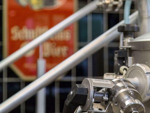 Es wird jetzt geplaudert, in diesem seltsamen Raum, halb Chemielabor, halb Kneipe, auf der einen Seite die makellosen Brauzylinder, verbunden mit langen Rohren, auf der anderen Seite die Zapfanlage mit dem Sticker „Make beer not war“, alte Kacheln an der Wand, am Boden ein rostiger Ausguss, vom lange versprochenen Neubau für die VLB, dem Forschungslabor für Bier, ist nebenan bislang nur eine planierte Sandfläche zu sehen.