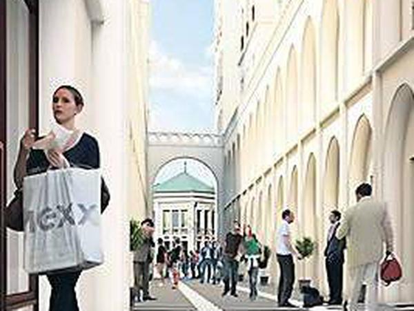 Mit Wasserspielen im Innenhof: Zwischen Opernpalais und Friedrichswerderscher Kirche entstehen neue Luxuswohnungen. Ab September werden dort auf 9500 Quadratmetern Townhouses, Geschäfte und Büros gebaut.