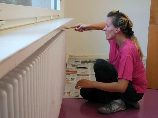 Die Beteiligung am ersten Aktionstag in der Kita am Griechischen Park in Oberschöneweide war recht übersichtlich. Drei Eltern und eine Erzieherin schoben das Inventar in zwei Grupppenräumen zusammen, damit die Wände neu verspachtelt und gestrichen werden können. Die Initiative war von den Eltern ausgegangen. Die Wände hatten in den vergangenen Jahren etwas gelitten. Die Kita ist eigentlich in einem guten Zustand. 2006 wurde der Bau aus den 50er Jahren von Grund auf saniert und neu gestaltet. Jetzt wirkt er wie das Atelierhaus eines Bauhaus-Architekten. 180 Kinder können hier betreut werden. Die Einrichtung gehört zum Kita-Eigenbetrieb Südost.