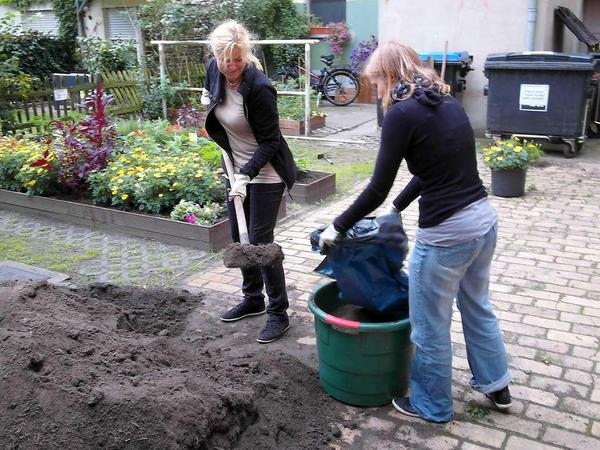 und aus einer befreundeten Grundschule begannen am Freitag mit der Renovierung der neuen Räume. Außerdem musste der neu gestaltete Hinterhof noch aufgeräumt werden. Hier sind neue Beete und ein Buddelkasten für die Kita-Kinder entstanden, auf ehemaligen Parkplätzen. Geschäftsführerein Anita Engelmann hofft, das bis November alles fertig ist. Im Januar 2015 steigt dann die große Einweihungsparty.