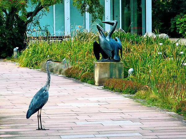 Mit der Stille kommt der Reiher. Obwohl es an den Wasserspielen der Freundschaftsinsel gar nicht so still ist. Immer rauscht es leise. Oder summt. Oder die Vögel machen Lärm. Der Reiher stelzt mal hier, mal da, wie ein Hausherr auf Kontrollgang. Sybille Wesenberg findet dort von Zeit zu Zeit das Glück.