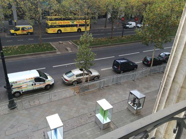 Die Beamten waren mit einem Infomobil vor Ort, weil sie zum Verkaufsstart des neuen iPads eine größere Menschenmenge vor dem Apple-Store erwartet hatten. Dieses Fahrzeug sperrte die Straße ab.