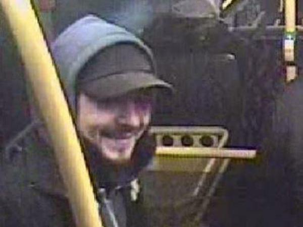 · trug ein schwarzes Basecap und eine schwarze Jacke