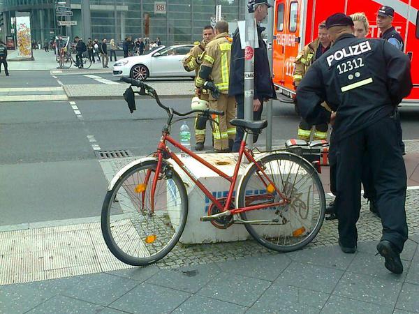 Am Freitagmittag wurde ein Radfahrerin am Potsdamer Platz von einem Lastwagen angefahren und lebensgefährlich verletzt. Nach Angaben der Polizei wollte die 28-Jährige mit ihrem Damenrad auf der Leipziger Straße den Potsdamer Platz geradeaus überqueren. Dabei wurde sie vom Fahrer eines holländischen Sattelschleppers übersehen, der aus der Leipziger Straße kommend nach rechts in die Ebertstraße abbiegen wollte. Die Frau stürzte. Ein zufällig vor Ort befindlicher Arzt sowie ein weiterer Zeuge leisteten Erste Hilfe. Der 46-jährige LKW-Fahrer erlitt einen Schock, wieso er die Radfahrerin übersah, ist unklar. Die 28-Jährige fuhr auf dem an dieser Stelle benutzungspflichtigen Radweg. Auf dem Potsdamer Platz kam es bis 18 Uhr wegen der umfangreichen Unfalldokumentation durch die Polizei zu Behinderungen.