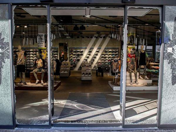 Protest gegen Fußball-WM: Scheiben bei Adidas eingeschlagen