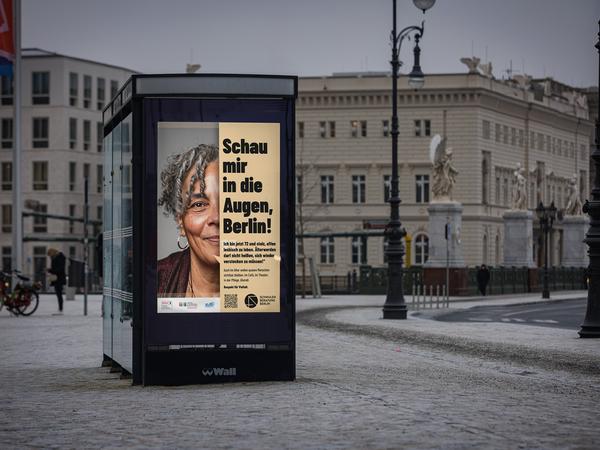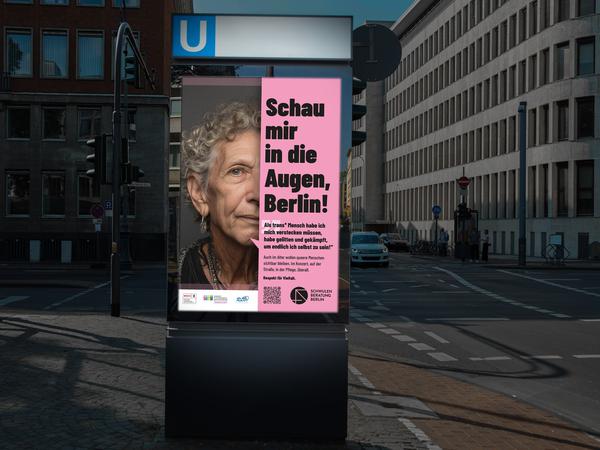Mit der Kampagne „Schau mir in die Augen, Berlin“ machen die Schwulenberatung Berlin und der Verein Rad und Tat – Offene Initiative Lesbischer Frauen (RuT) auf das Thema Queerness im Alter aufmerksam. Seit vergangener Woche sind die Plakate an Bushaltestellen, U-Bahnhöfen und Litfaßsäulen in ganz Berlin zu sehen.