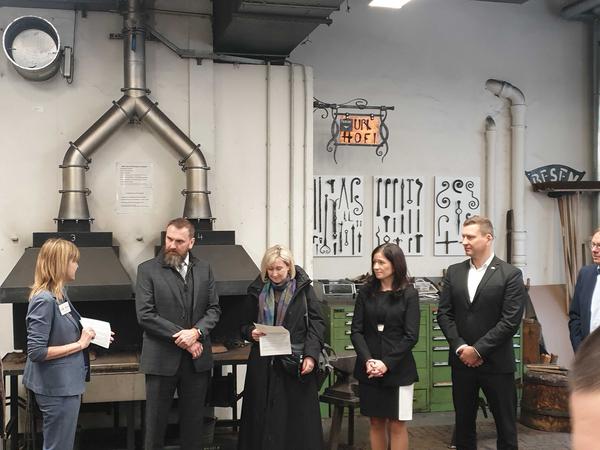 Klack, klack, klack. In der Schmiedewerkstatt der Hans Böckler Schule ist das unverwechselbare Geräusch zu hören, das ertönt, wenn Metall auf Metall prallt. Sechs Schüler:innen hämmern hier in Anwesenheit ihres Lehrers auf Metallobjekte ein. Als der ukrainische Bildungsminister Oksen Lisovyi, die Vorsitzende der Kultusministerkonferenz und Berliner Bildungssenatorin Katharina Günther-Wünsch (CDU) sowie Mario Brandenburg, der Parlamentarische Staatssekretär des Bundesministeriums für Bildung und Forschung (BMBF) eintreten, verstummen die Hämmer.