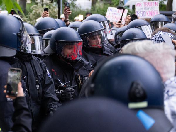 Ein Berliner Polizist sei von Palästina-Demonstranten in die Menge gezogen und getreten worden, berichtete die Polizei im Mai. Medien übernahmen die Sichtweise, doch stimmt sie wirklich?