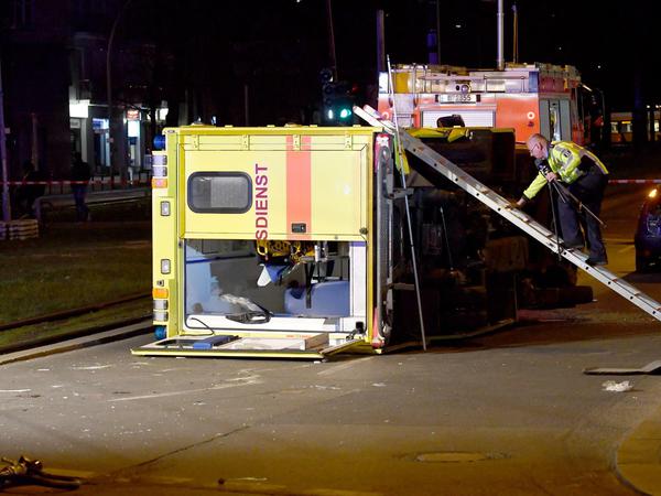 Auch ein Rettungswagen war involviert, der durch den Unfall auf die Seite geschleudert wurde.