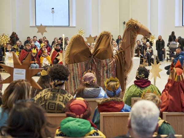 Sie tragen goldene Kronen, bunte Mäntel und natürlich glänzende Sterne: Mehr als 150 kleine Königinnen und Könige sitzen am Samstag in der Sankt-Hedwigs-Kathedrale am Berliner Bebelplatz. Denn zwischen Weihnachten und dem Fest der Heiligen Drei Könige am 6. Januar ist in der katholischen Kirche traditionell die Zeit der Sternsinger.
