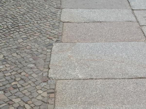 Vor allem der stadtgestalterische und materielle Wert der Granitplatten ist inzwischen unumstritten. Allerdings steht ihrer Verlegung oft ein praktisches Problem entgegen. Denn sobald die Grundsanierung einer Berliner Straße fällig ist, gelten die Vorschriften für den Straßenneubau - und die erlauben „Abweichungen von der Ebenflächigkeit innerhalb einer vier Meter langen Messstrecke“ nur in der Größenordnung von höchstens sechs bis zehn Millimetern, wie es in der Planungsvorschrift heißt. Weil so geringe Höhenunterschiede und präzise Anschlüsse mit den gründerzeitlichen Granitplatten oft nicht zu leisten sind, können sie nur nach aufwendiger Aufarbeitung wiederverwendet werden. Kein Bezirk will verklagt werden, weil Passanten auf Gehwegen gestolpert sind. Die historische Oberfläche musste weichen, die Alt-Platten wurden lange Zeit entweder durch Neuware ausgetauscht oder so gründlich aufgearbeitet, dass sie kaum noch als Originale erkennbar blieben.