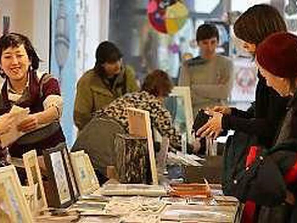 Work & Shop also: Heißt zum einen, dass die Leute sich anschauen (und kaufen) können, was Berliner Maler, Illustratoren, Fotografen, Keramiker, so hergestellt haben. Heißt zum anderen, dass die Besucher für Unkostenbeiträge bis maximal 15 Euro selbst Hand anlegen können. Fensterradierung, Papierschöpfen, Schmuckdesign, Siebdruck, Collage – breite Auswahl. „Unsere Zielgruppe sind keine Bastel-Muttis“, sagt Sabrina Pützer, „sondern Kunst-Interessierte aus allen Bereichen.“ Sie selbst baut mit Interessierten eine Camera Obscura, die Urform der Lochkamera.