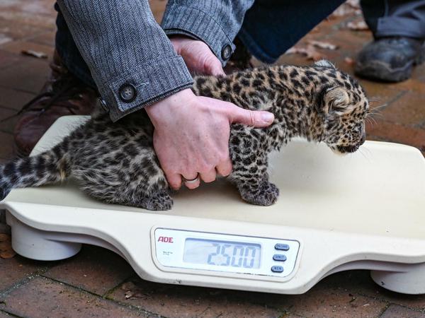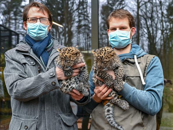 Momentan leben fünf China-Leoparden im Tierpark Cottbus. Außer dem Zuchtpaar und ihren zwei Jungtieren gibt es noch ein älteres Weibchen. Kämmerling freute sich über den doppelten Nachwuchs.