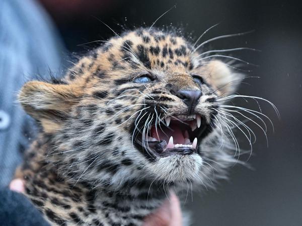 Nein, sind die goldig! Zwei sechs Wochen alte China-Leoparden-Jungtiere sind am Donnerstag im Cottbusser Tierpark zum ersten Mal öffentlich gezeigt worden.