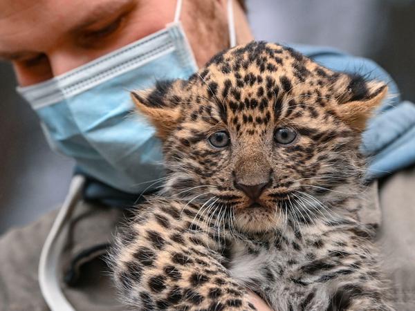 Der Tierpark Cottbus hat am Donnerstag zum ersten Mal den Nachwuchs seines China-Leoparden-Paares öffentlich gezeigt.