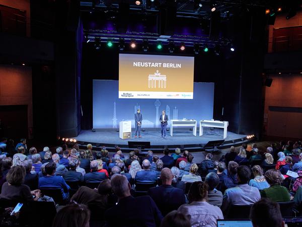 Die Neustart-Konzeptkonferenz im Gasometer auf dem Euref-Campus.